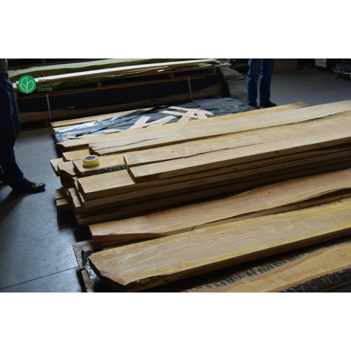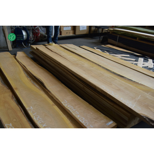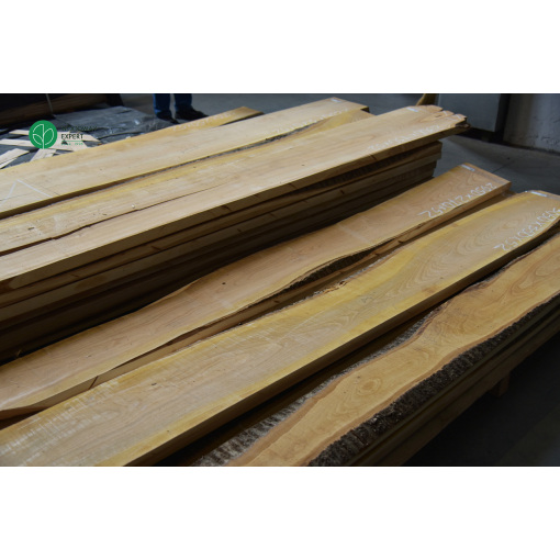 столярная доска из черешни. Это сырье без видимых дефектов. Такие необрезные доски черешни выбирают для производства различных предметов обстановки, обшивки стен и потолков, стеновых панелей;