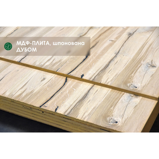 - Оптимальные размеры. В нашем каталоге представлены МДФ-плиты в шпоне дуба большого формата. Полотно размером 2.8 х 1.033 м подходит для производства облицовочных материалов для стен и потолков.