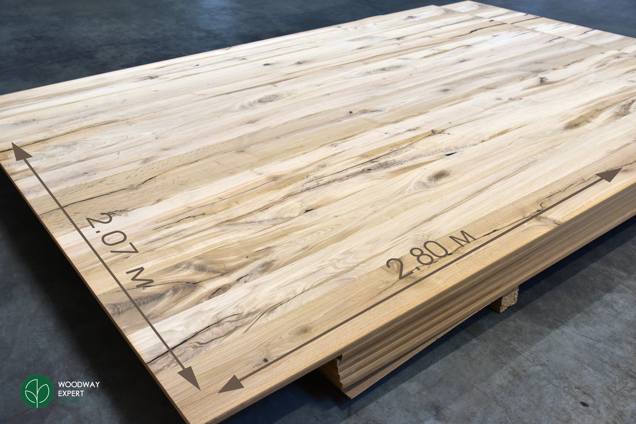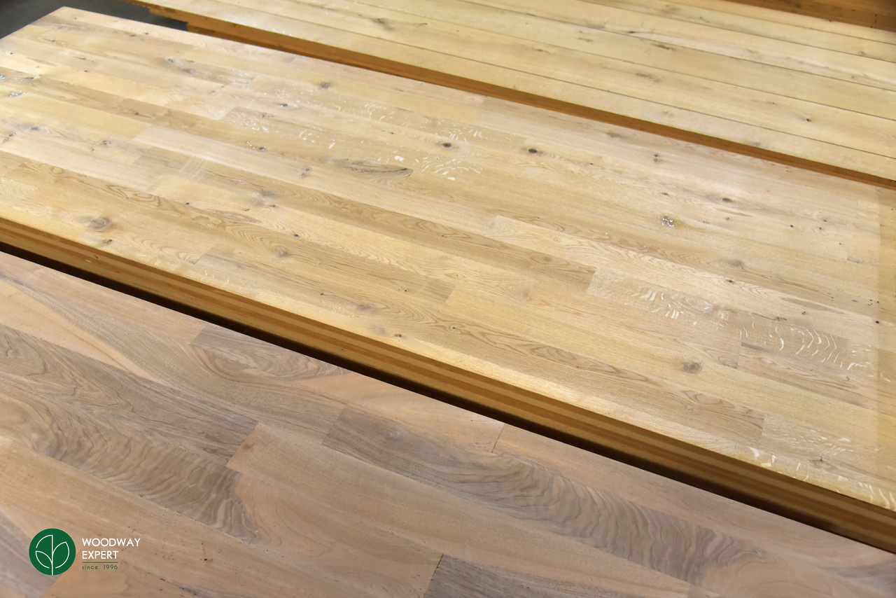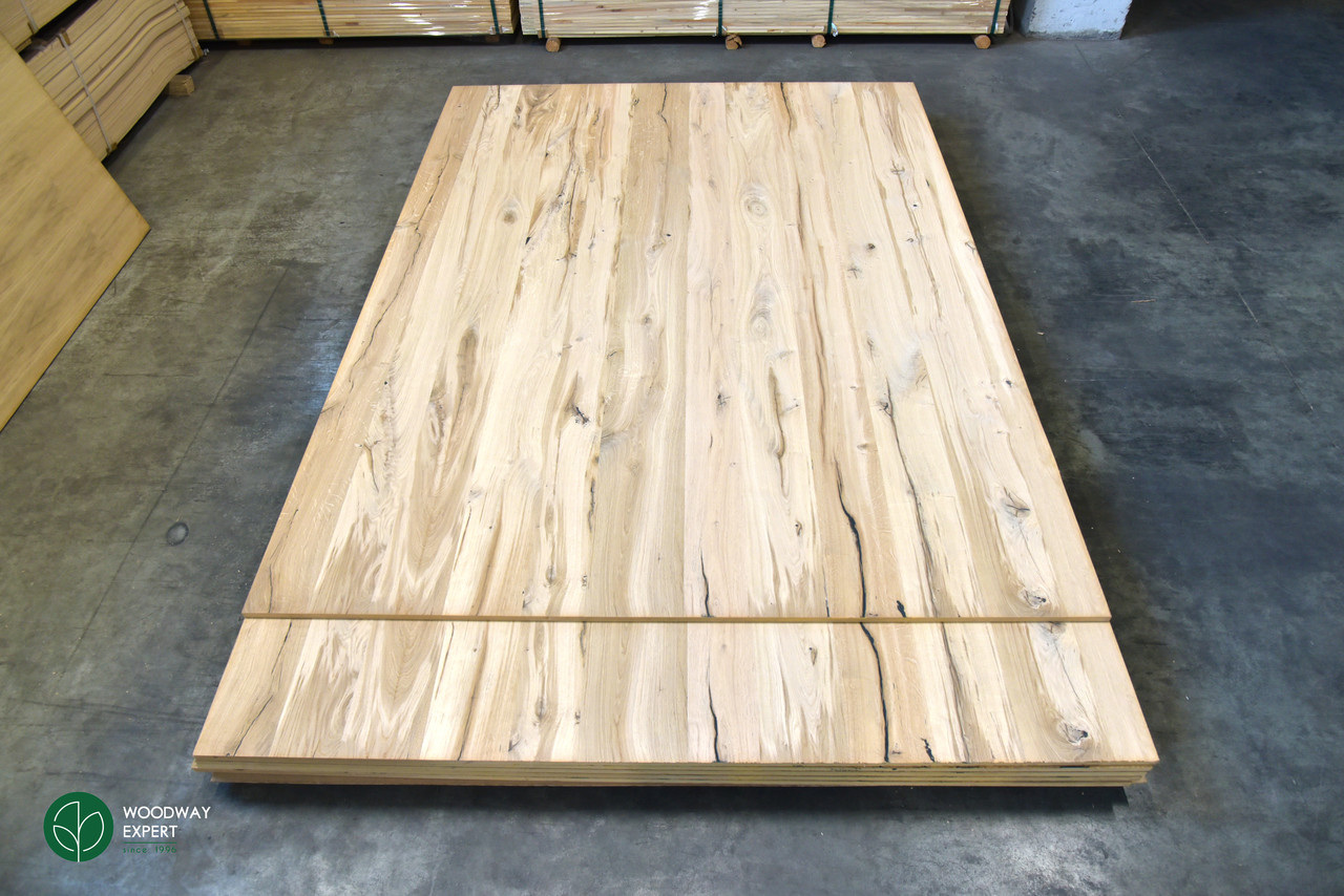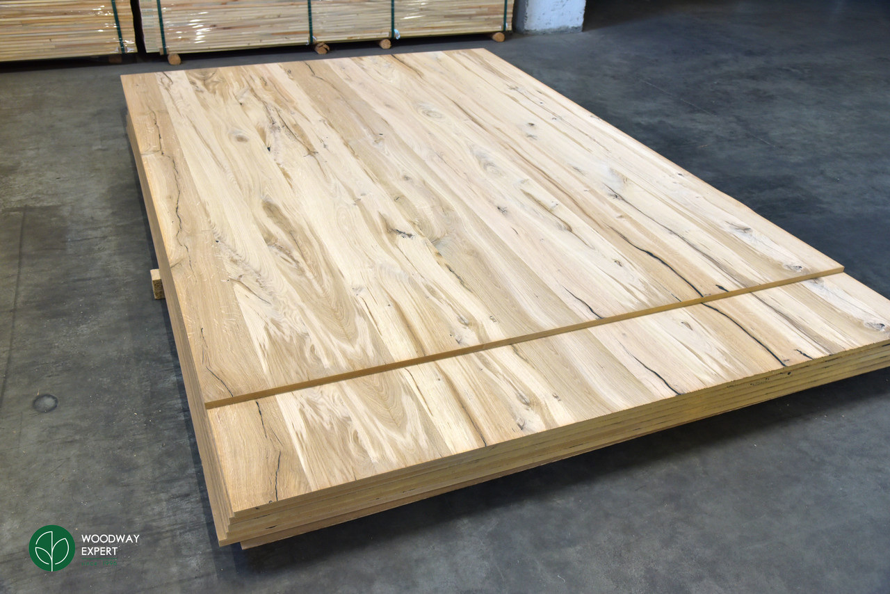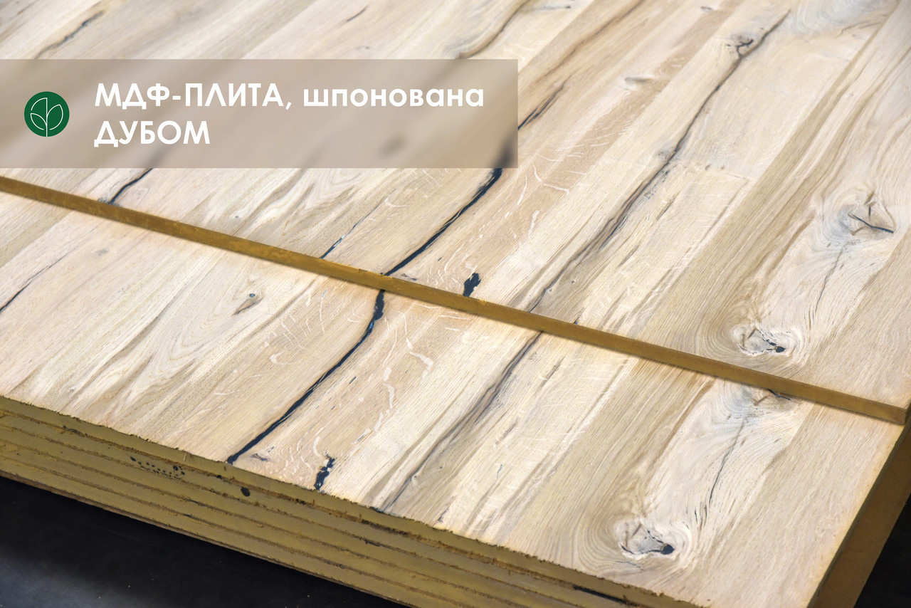 - Калибровка. МДФ-плиты проходят акклиматизацию и калибруются до наклеивания натурального шпона дуба в сучках.