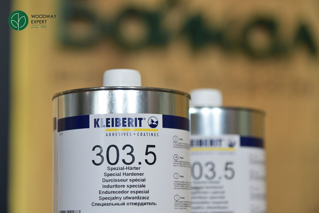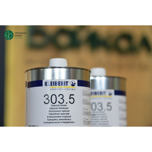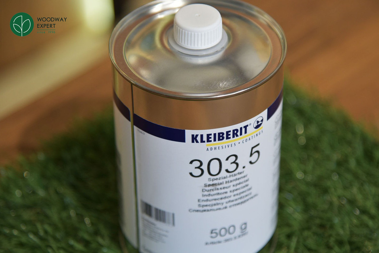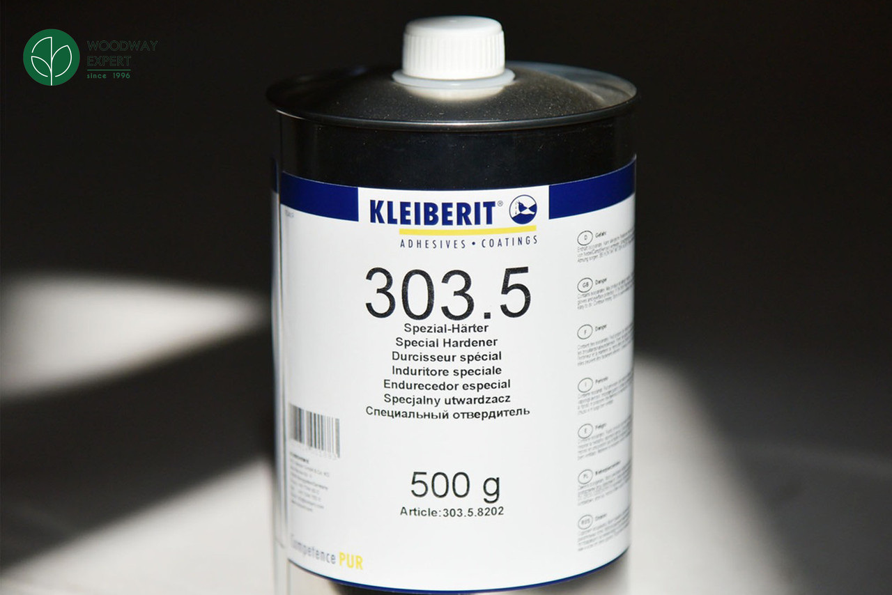 Турбоотверджувач Kleiberit 303.5 призначений для клеїв 300.0, 303.0 та 303.2 та підвищує показники вологостійкості з D3 до D4 (відповідно до DIN EN 204). Завдяки додаванню засобу клей можна використовувати як: