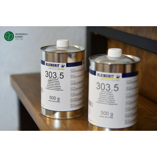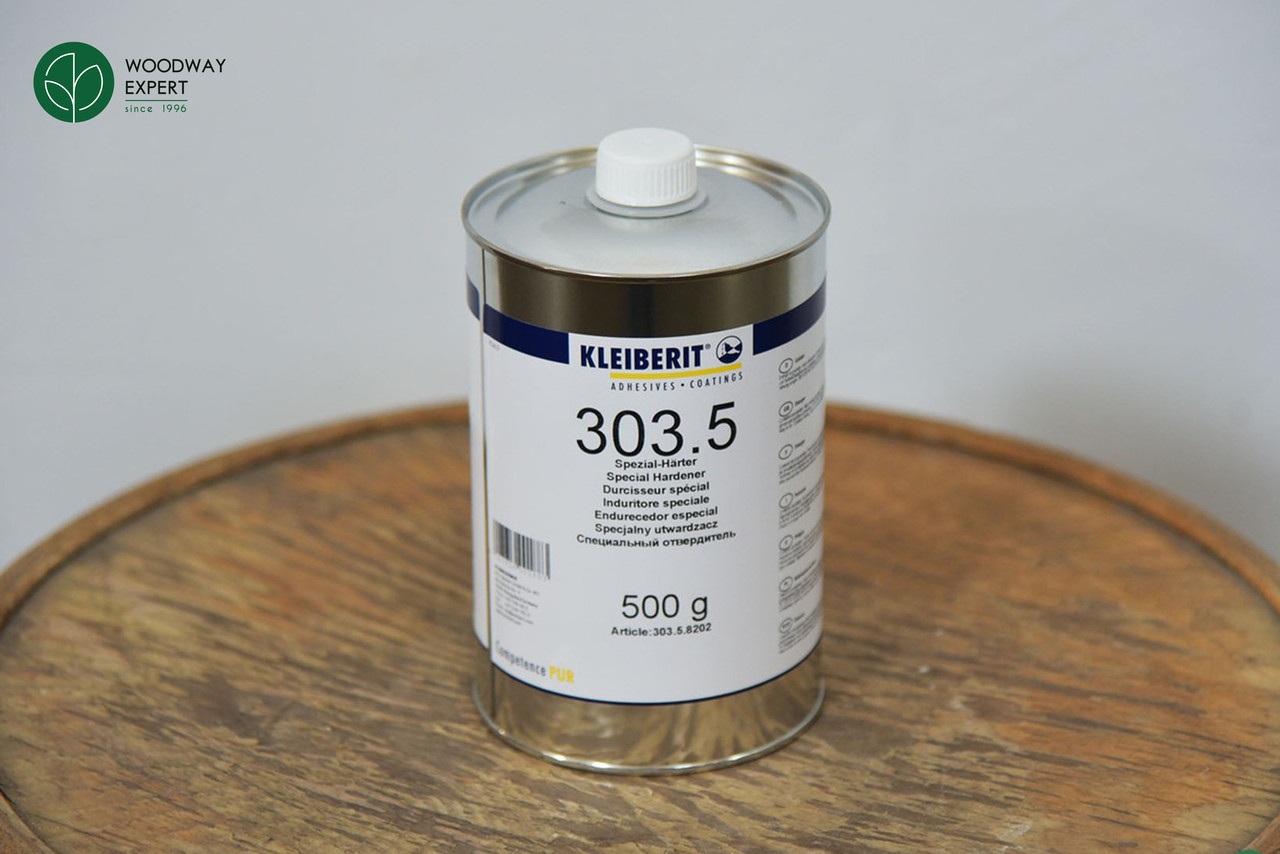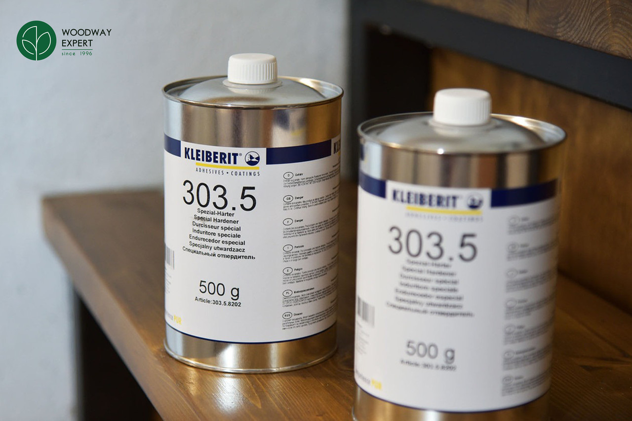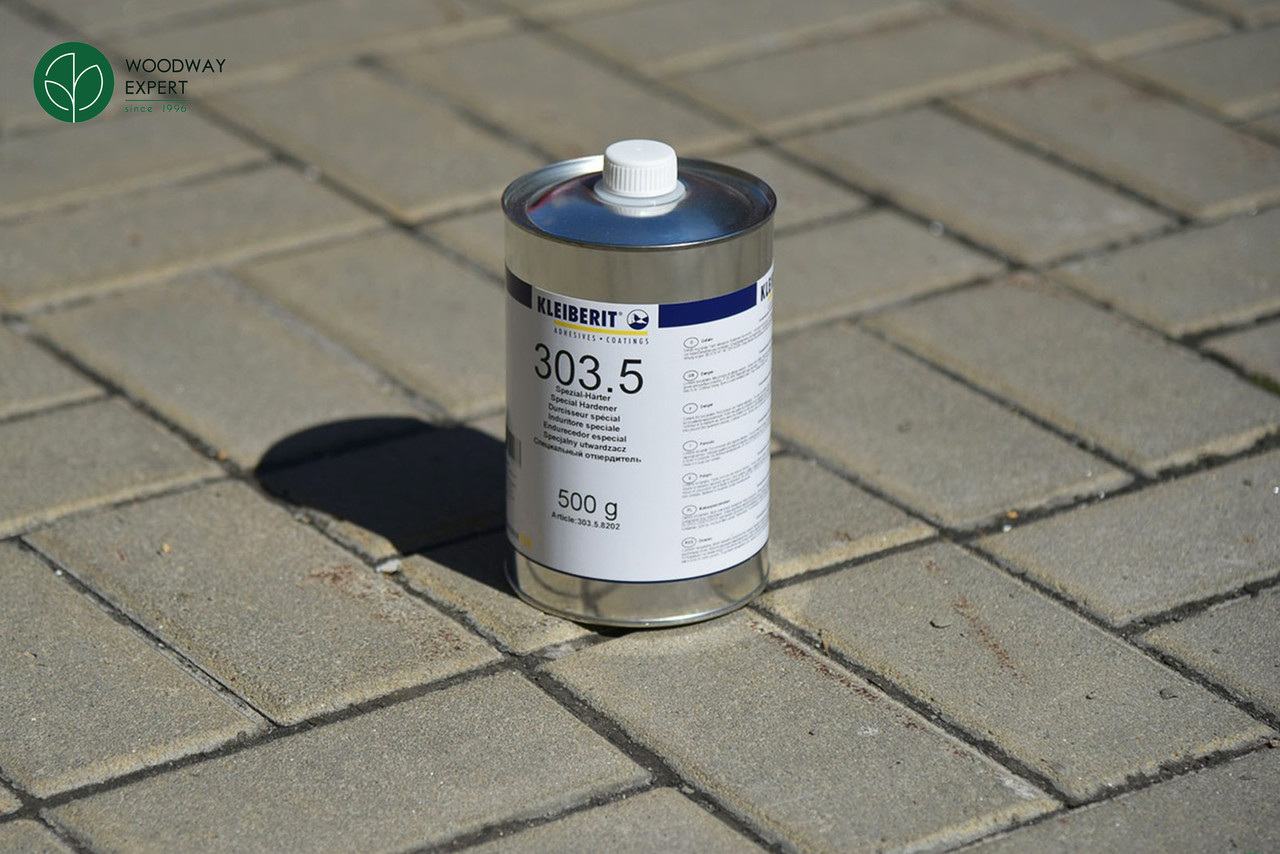 Турбоотверджувач Kleiberit 303.5 призначений для клеїв 300.0, 303.0 та 303.2 та підвищує показники вологостійкості з D3 до D4 (відповідно до DIN EN 204). Завдяки додаванню засобу клей можна використовувати як: