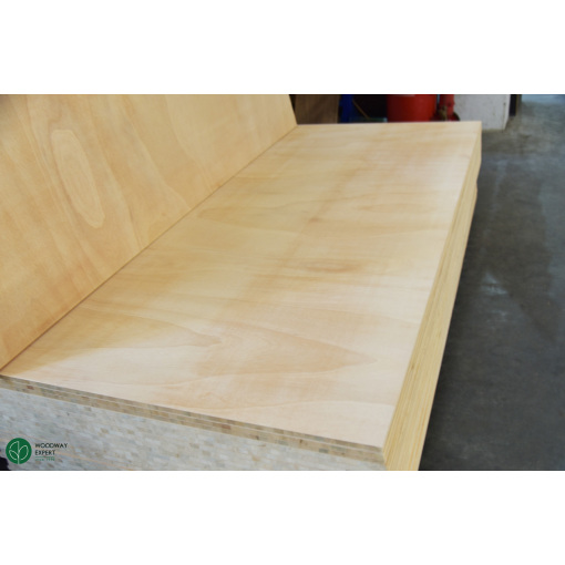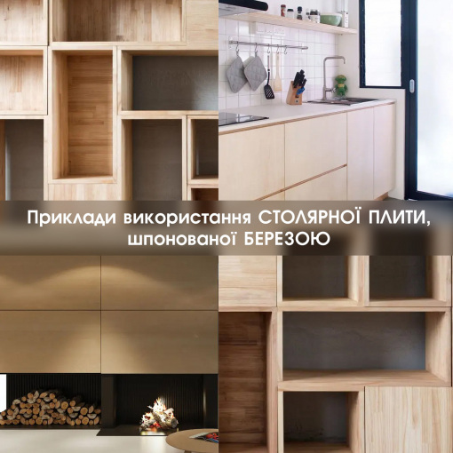 Щоб надати матеріалу естетичнішого вигляду, поверхню шпонують березою. Тонкий зріз натуральної деревини точно передає фактуру та колірну гаму березового масиву. Шпонована столярна плита візуально нагадує цільну деревину, але водночас стабільніша та доступніша за ціною.
